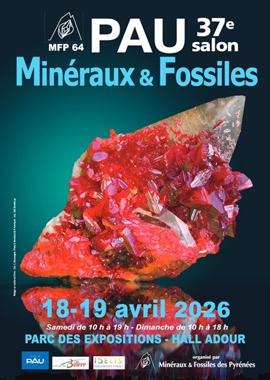 | PAU (64 - Pyrénées-Atlantiques) 37 ème Exposition-Bourse-Salon minéraux et fossiles / Parc des expositions / 18 et 19 avril 2026 / Entrée payante |