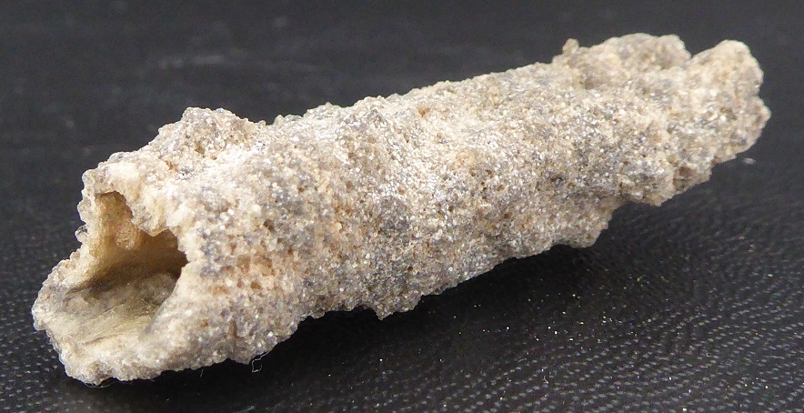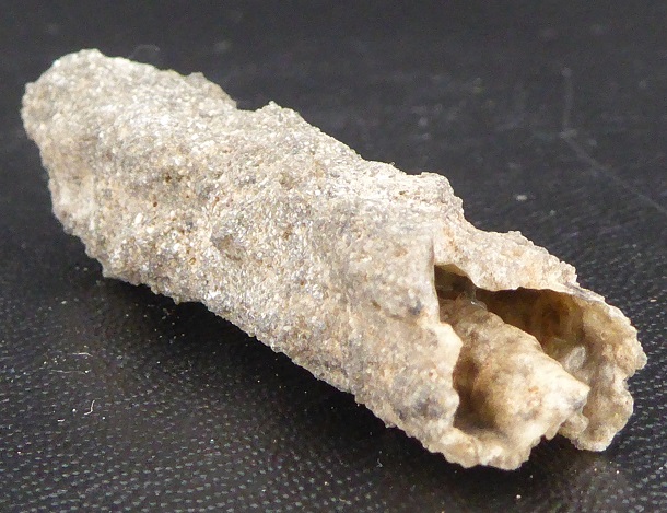 | Description : | Cette fulgurite est de la silice naturel amorphe. Elle se forme suite à un impact de foudre sur un sol sableux. La puissance de la foudre est estimée à un milliard de Joules et provoque la fonte des matériaux siliceux, ce qui donne un tube creux. |