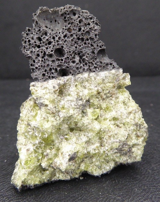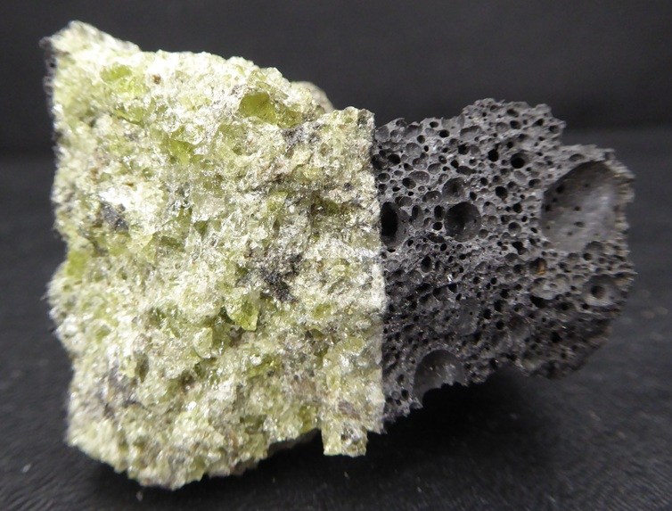 | Description : | Belle pièce d'olivine incluse dans du basalte. |