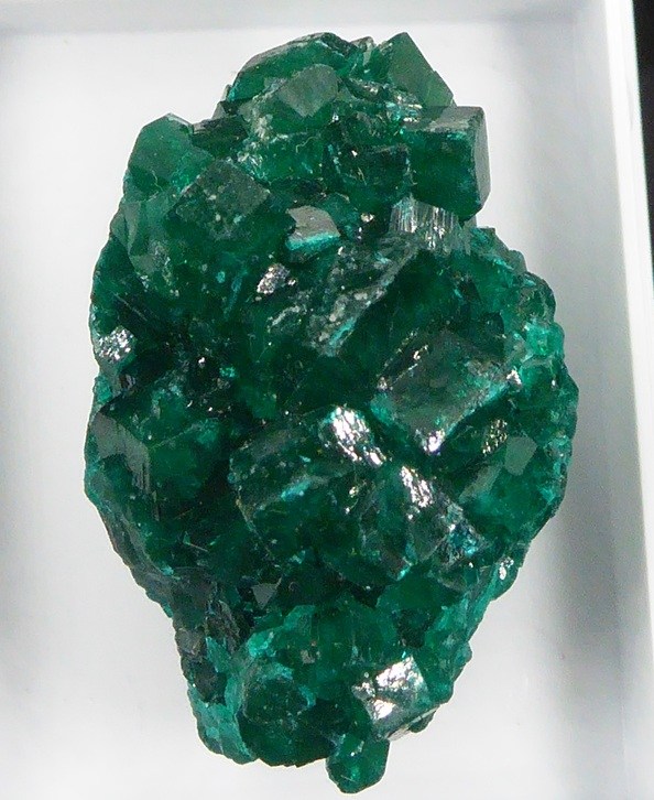 | Rajout Décembre 2025 / DIOPTASE / Mine Tantara, Shinkolobwe, Katanga, R. D. du Congo / Bel échantillon de dioptase d'un beau vert brillant. Les cristaux mesurent 0,4 cm pour les plus grands. Livrée dans une boite plexi. | Disponible |