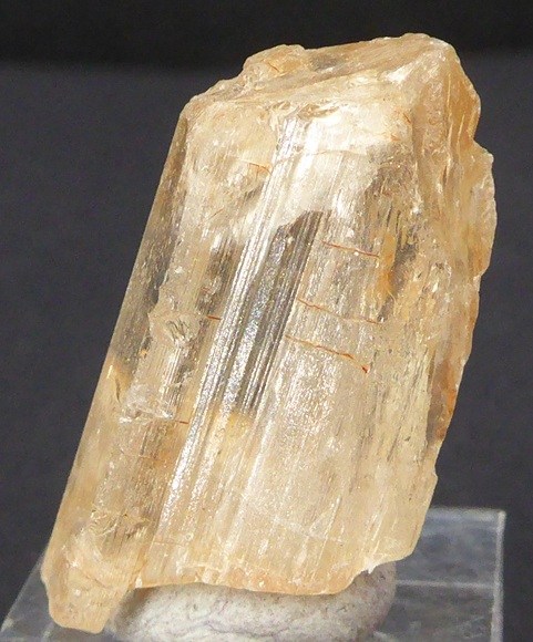 | Rajout Décembre 2025 / SCAPOLITE / Soamatasy, district d'Ihosy, Ihorombe, Madagascar / Bonne pièce de ce rare minéral montrant des faces brillantes et striées. Le cristal est transparent et a une belle couleur jaune dorée. | Disponible |