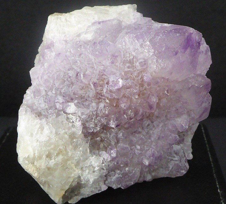 | Description : | Belle pièce de quartz légèrement améthyste avec 2 générations de cristaux. La première est représentée par un quartz gris complétement recouvert par une deuxième génération d'une multitude de petits cristaux pointus avec pour terminaison un cristal plus développé. |