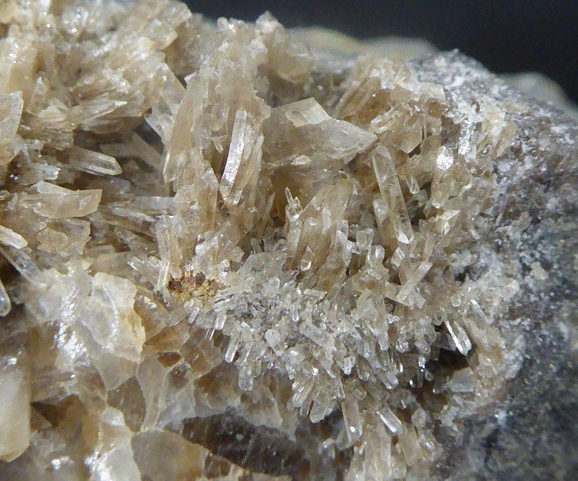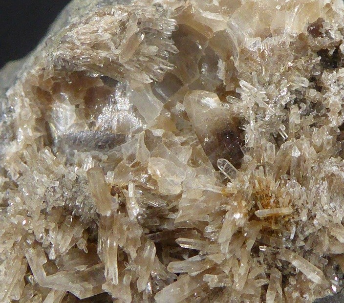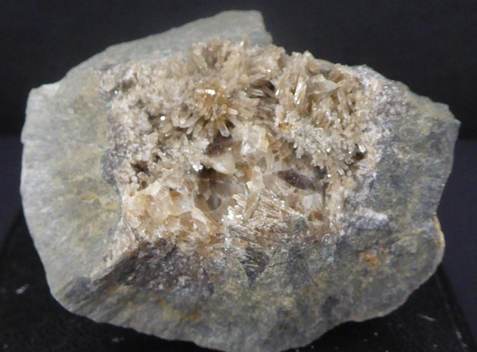 | Description : | Beau morceau de septaria ayant dans son centre une cavité remplie de fins cristaux de baryte brillants mesurant jusqu'à 0,6 cm. |