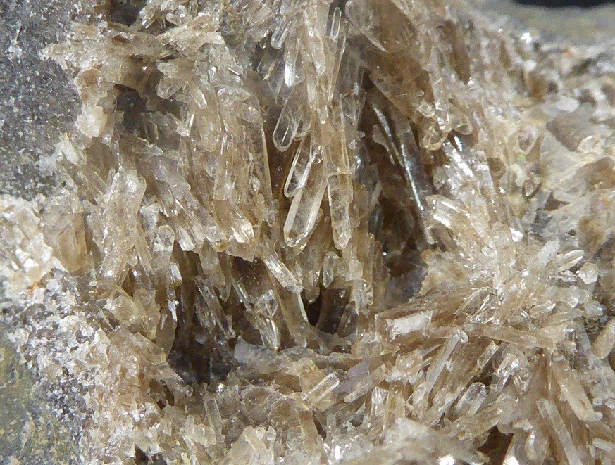 | Description : | Beau morceau de septaria ayant dans son centre une cavité remplie de fins cristaux de baryte brillants mesurant jusqu'à 1 cm. |