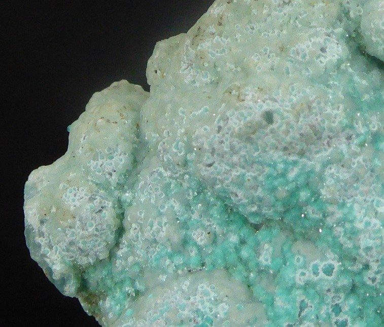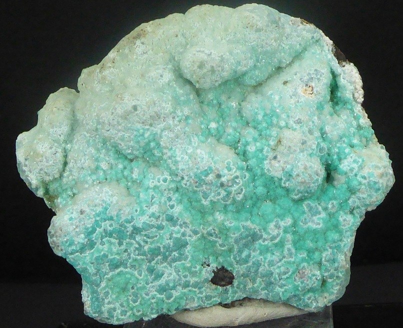 | Description : | Très belle pièce de smithsonite verdâtre montrant des cristaux globulaires recouverts de micro-cristaux en aiguilles non déterminées. |