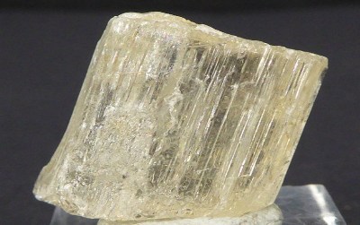 Rajout Décembre 2025 / SCAPOLITE / Soamatasy, district d'Ihosy, Ihorombe, Madagascar / Bonne pièce de ce rare minéral montrant des faces brillantes et striées. Le cristal est transparent et a une belle couleur jaune dorée.