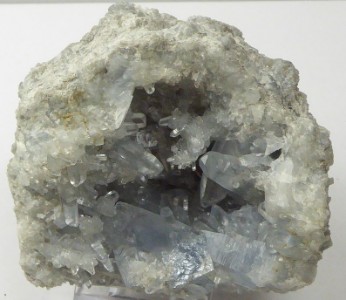 CELESTITE / gisement de Sakoany, Katsepy, Madagascar / Très belle cristallisation de célestite bleutées et transparentes. Les cristaux ont une forme de pointes, ce qui est assez rare dans ce gisement. Les plus grands cristaux mesurent 1,5 cm