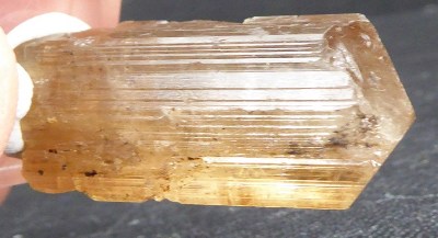 MARIALITE / Djebel Elkayl, Oualad Azem, Caïdat de Beni Oulid, Cercle de Taounate, Maroc / Beau monocristal scapolite brune translucide montrant des faces striées avec une belle terminaison.
