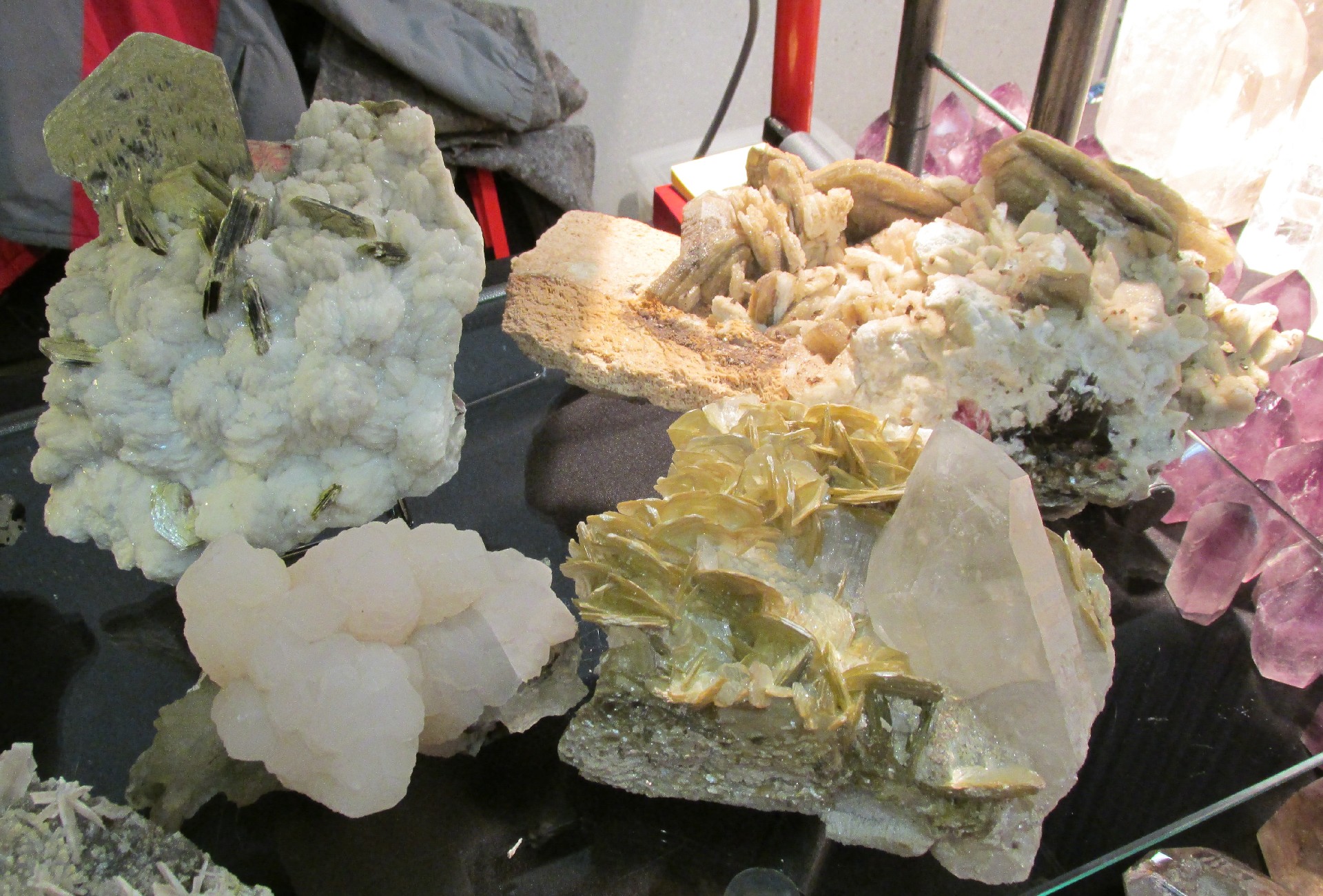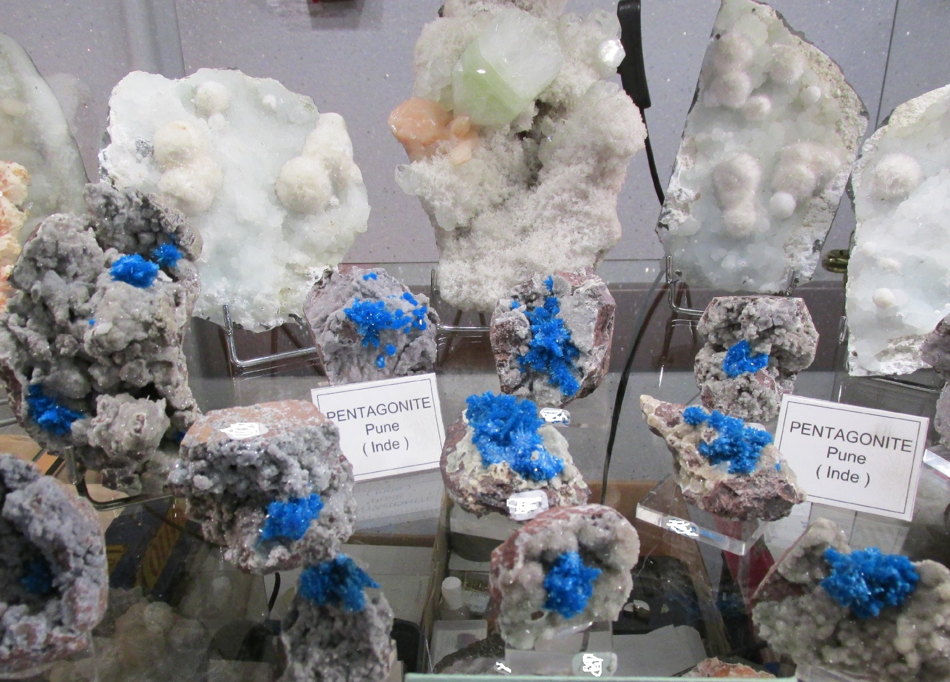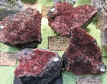 Luis Gopladas présentait un joli lot de pentagonite provenant de la carrière de Whagoli en Inde (photo IV). |