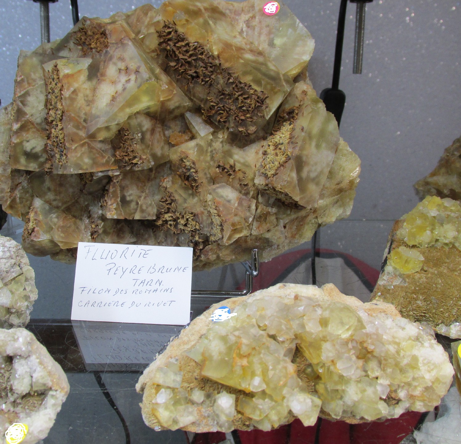 Christian Meurisse proposait un magnifique quartz provenant du Grand Châtelard, Savoie (cette pièce a obtenu la coupe du plus beau minéral). Quelques pièces d'améthyste d'Auvergne provenant de sa collection et d'une récolte ancienne de fluorite du Tarn (récolte personnelle) (photo II, III et IV). |