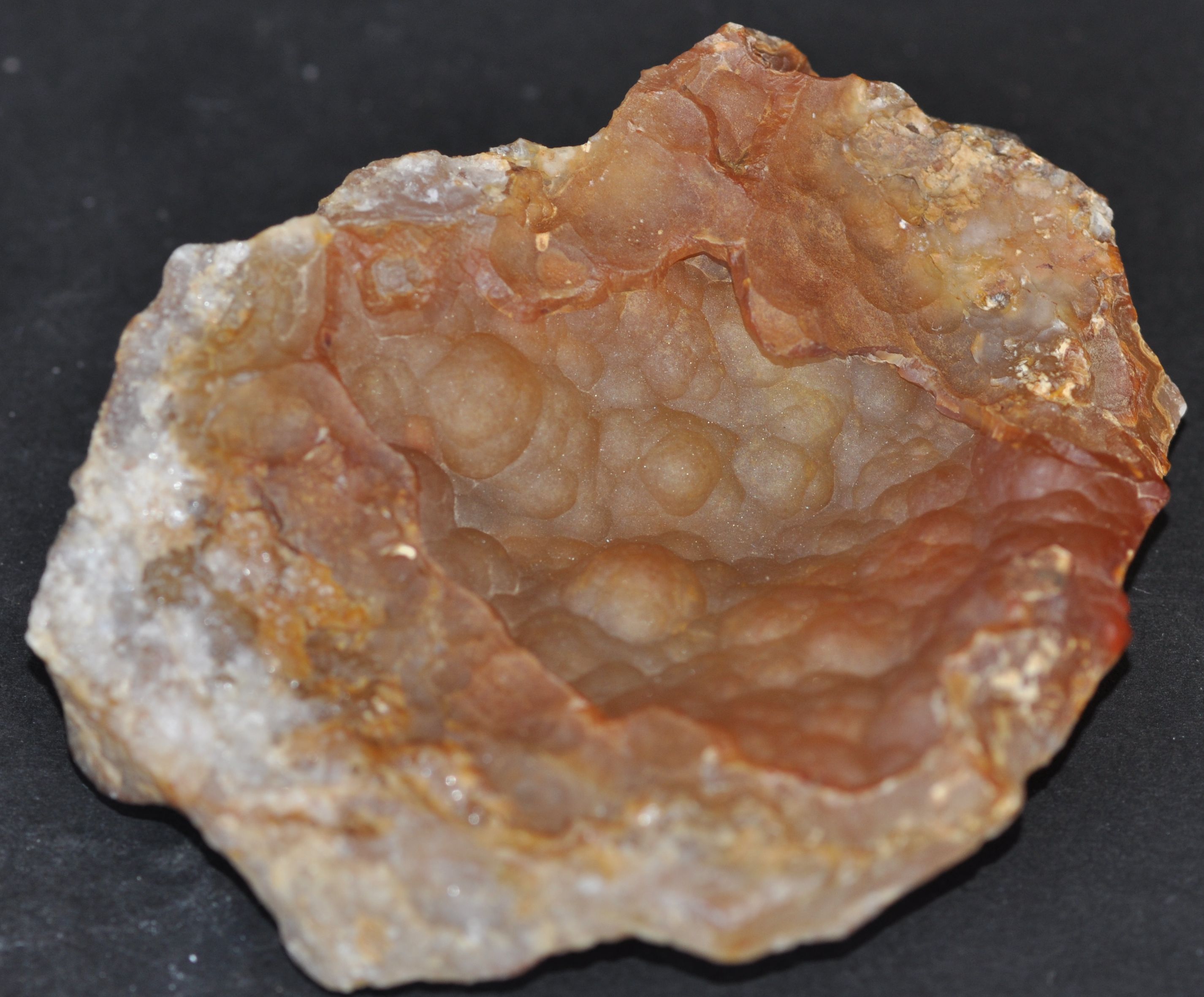 Photo 1 : cet calcédoine en géode provient de la Chapelle du Planté en Quilly, Loire atlantique, France (photo et ex-collection C.Garon). Photo II : Iles Celebes, Indonésie (photo et ex-collection C.Garon). |