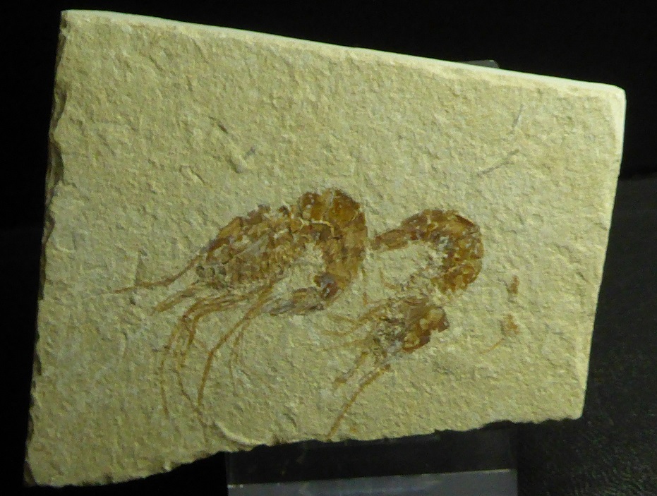 | Description : | Belle plaque montrant 2 crevettes fossiles dont la plus grande mesure 3 cm. |