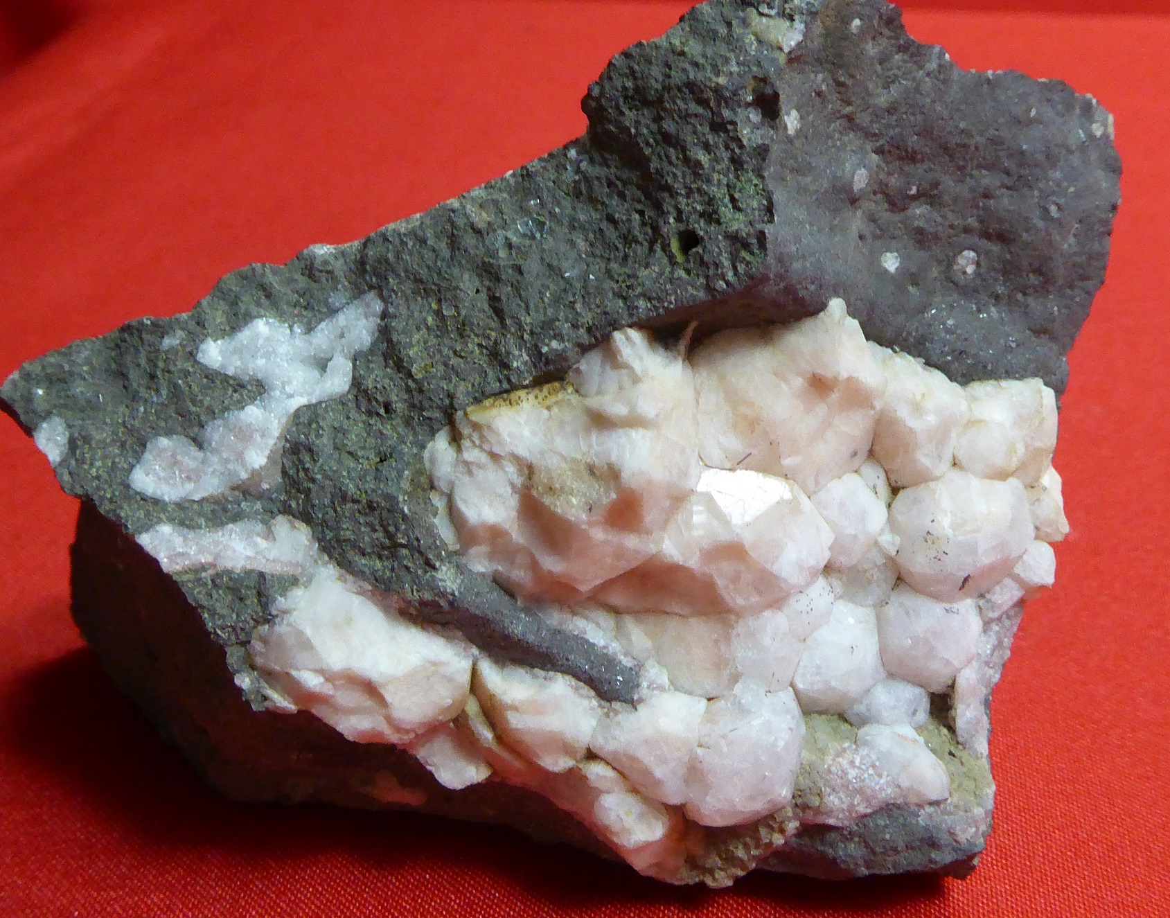 | Description : | Belle cristallisation d’analcime à éclat nacré reposant sur une gangue basaltique. Les plus grands cristaux mesurent 1 cm. Pièce accompagnée de son étiquette ancienne. |