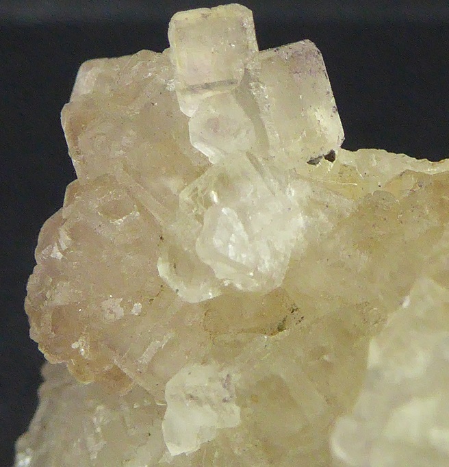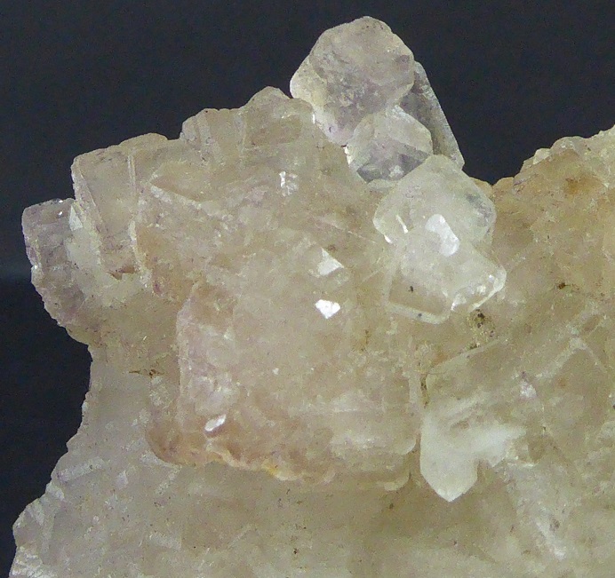 | Description : | Bonne pièce de fluorite cubique blanche à violine. Les cubes principaux mesurent 0,6 cm d'arêtes. |
