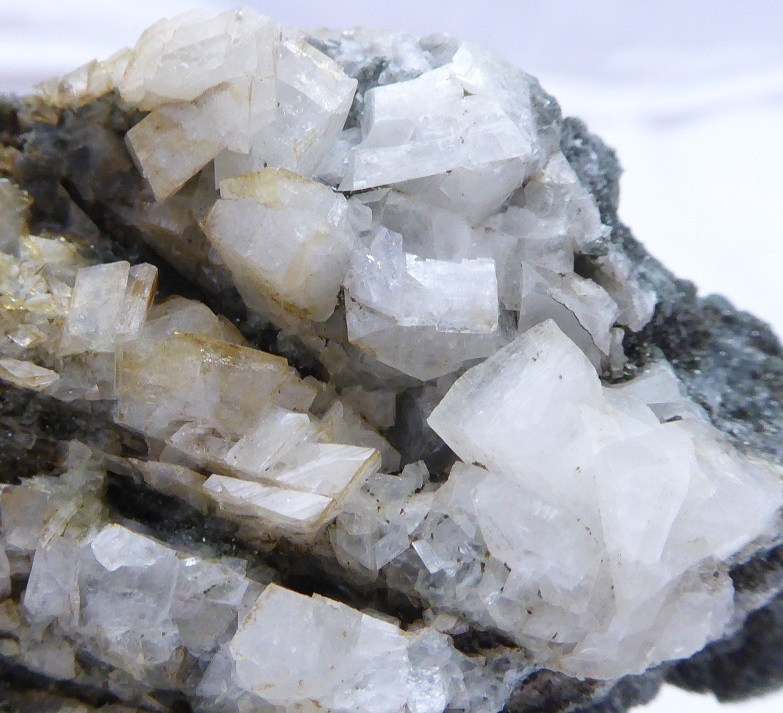 | ADULAIRE, actinote / Valais, Suisse / Très belle pièce d'adulaire blanche nacrée de 0,6 cm pour les plus grands dont le dos cristallisé est recouvert par de l'actinote verte. | Disponible |