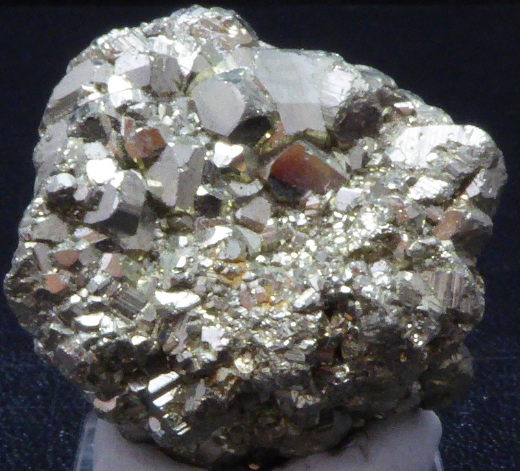| Description : | Bonne pièce de pyrite cubique montrant des troncatures complexes et des striures sur les faces. Elles sont très brillantes à éclat métallique. Les plus grands mesurent 0,5 cm. Quelques cristaux sont érodés sur le coté. |