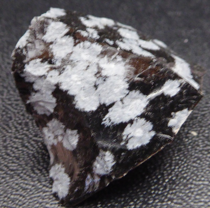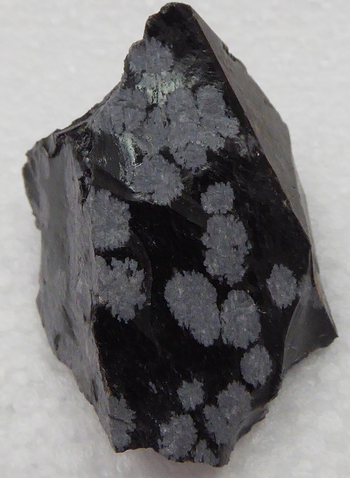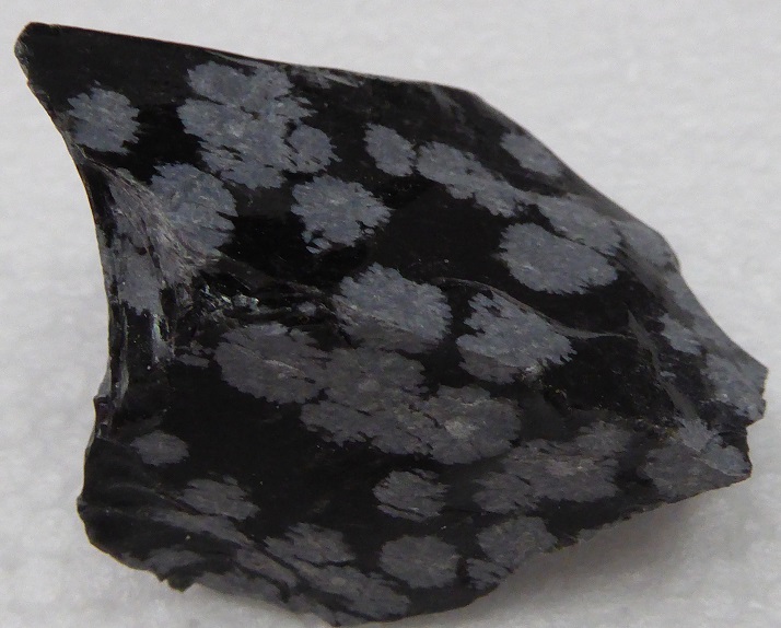 | OBSIDIENNE mouchetée / Black Spring, désert des roches noires, Millard Co., Utah, USA / Belle pièce montrant des mouches blanche dans de l'obsidienne noire. Ces mouches sont composées de cristobalite. | Disponible |