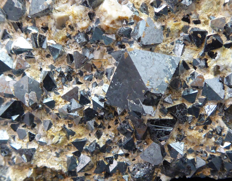 | MAGNETITE / Cerro Huanaquino, département de Potosi, Bolivie / Très belle cristallisation octaédrique de magnétite. Les cristaux sont gris noirs à éclat métallique. Les faces sont brillantes. Les plus grands mesurent 1 cm. Quelques cristaux sont clivés. | Disponible |