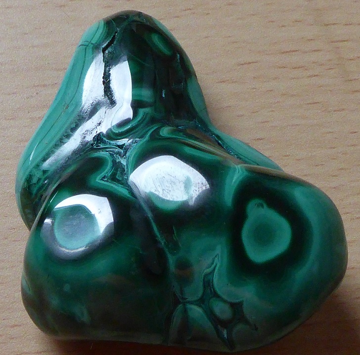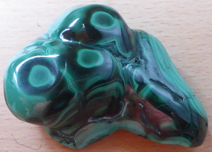 | MALACHITE / Kolwezi, district minier du Katanga, R. D. du Congo / Superbe échantillon de malachite polie montrant des zonations de divers dégradés de vert. | Disponible |