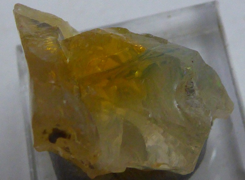 | OPALE / Wegel Tena, Secteur sud de Wollo, Région d'Amhara, Ethiopie / Jolie opale montrant de belles irrisations rouges, vertes et jaunes. Livrée sur son socle. | Disponible |
