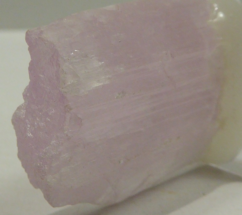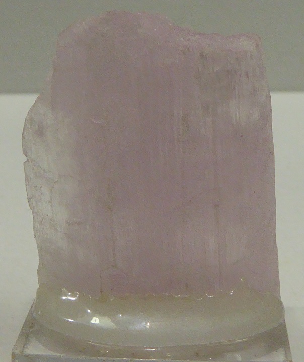 | KUNZITE (variété de spodumène) / Laghman, province du Nuristan, Afghanistan / Magnifique monocristal de kunzite transparent à translucide bien rose-violine. Les faces sont striées et brillantes et montre une bonne terminaison typique pour ce minéral. Livrée sur son socle. | Disponible |