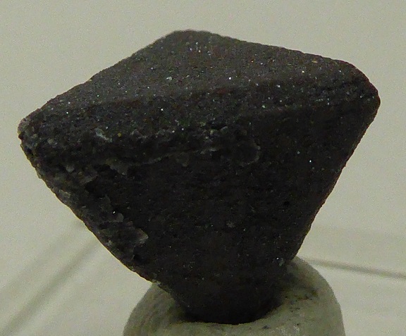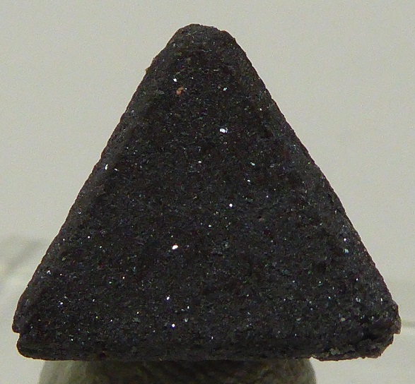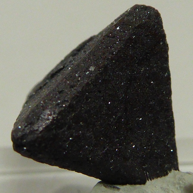 | ZUNYITE / Dôme de sel de Qalat-e Bala, Région de Bandar-Abbas, Hormozgan, Iran / Magnifique pièce de ce rare sorosilicate contenant de l'aluminium, du chlore et du fluor, nommée ZUNYITE. Le cristal est complet et montre un tétraèdre parfait avec de belles troncatures. Sa couleur est brune foncée à rougeâtre. Il est accompagné d'inclusions lamellaires brillantes d'hématite. Il mesure 1,2 cm pour la plus grande arêtre. Echantillon très rare et de provenance inhabituelle.Livrée sur son socle. | Disponible |