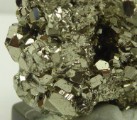 | Description : | Bonne pièce de pyrite cubique montrant des troncatures complexes et des striures sur les faces. Les cristaux sont très brillants à éclat métallique. Les plus grands mesurent 0,3 cm. Quelques cristaux sont érodés sur le coté. |