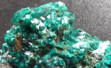 | DIOPTASE / Mine Renéville, District de Kindanba, Département de Pool, république du Congo (Brazaville) / Magnifique pièce de dioptase vertes brillantes. Les plus grands cristaux mesurent 2 cm. Livrée sur un socle plexi. Les photos de dioptase sont difficiles à réaliser, et donc le rendu n'est pas à la hauteur de la réel beauté de la pièce. | Disponible |