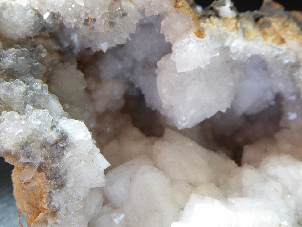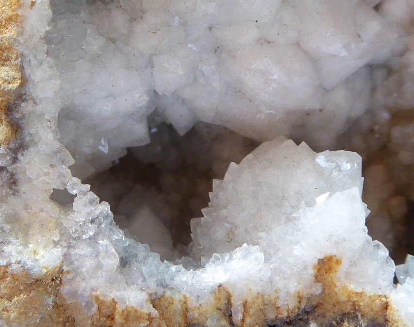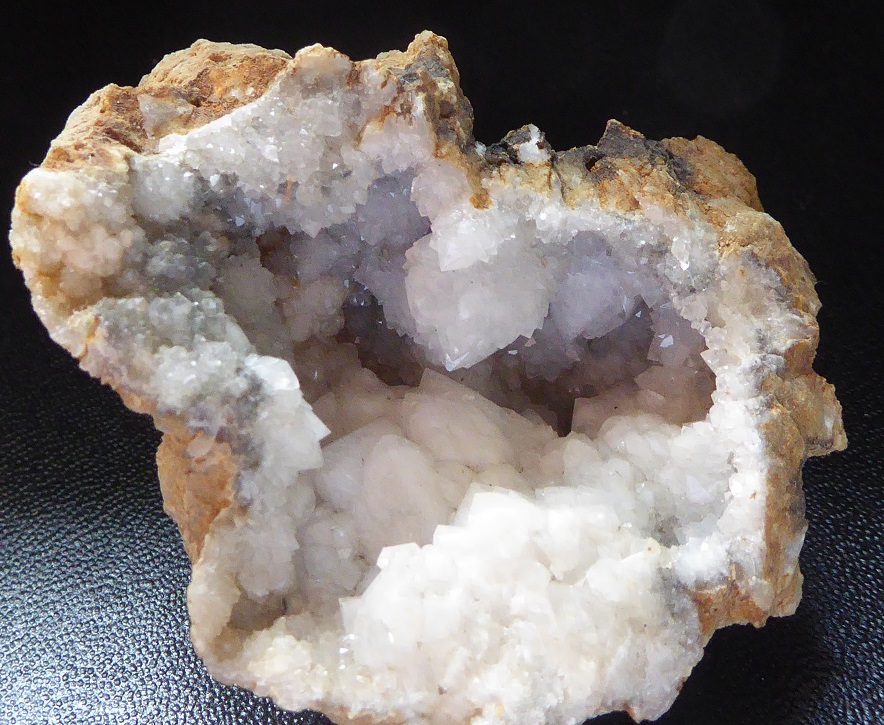 | QUARTZ (geode) / Douazit, Landes, France / Jolie demi géode de quartz montrant des cristaux laiteux mesurant jusqu'à 0,7 cm | Disponible |