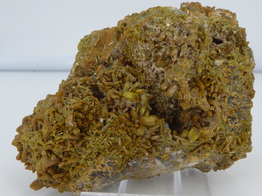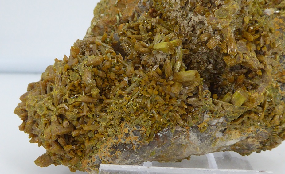 | PYROMORPHITE / Mine Les Farges, Ussel, Corrèze, France / Bonne pièce de pyromorphite cristallisée sur du quartz dont quelques faces apparaissent.Les plus grands cristaux mesurent 0,6 cm et sont parfois biterminés. Quelques cristaux sont clivés. | Disponible |