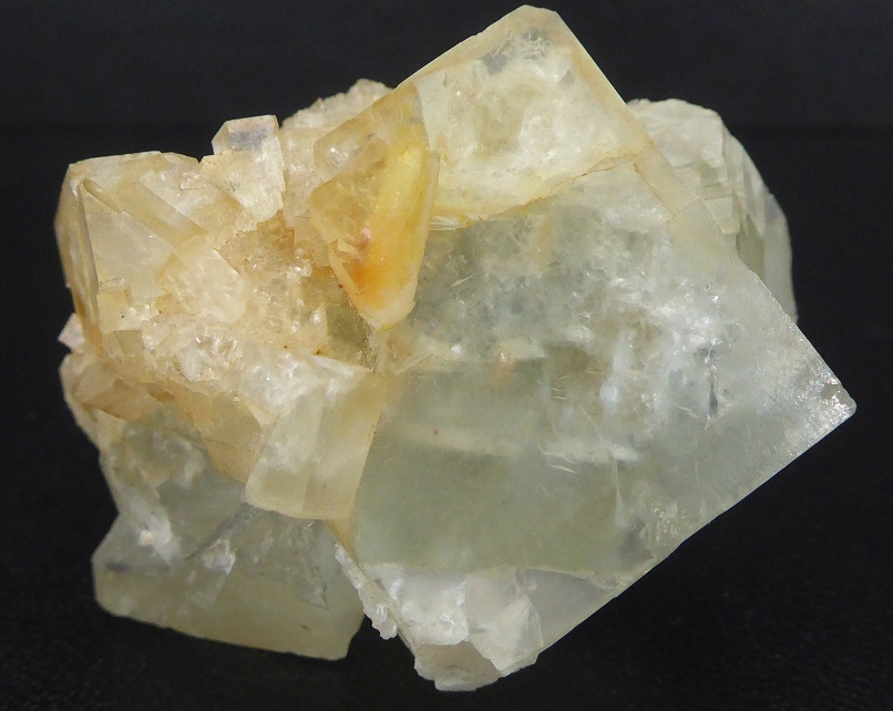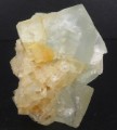 | Description : | Très belle pièce de fluorite cubique légèrement verdâtre recouverte par endroit de microcristaux de quartz. Le cube le plus grand mesure 2,5 cm. |