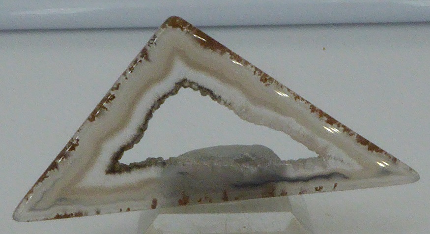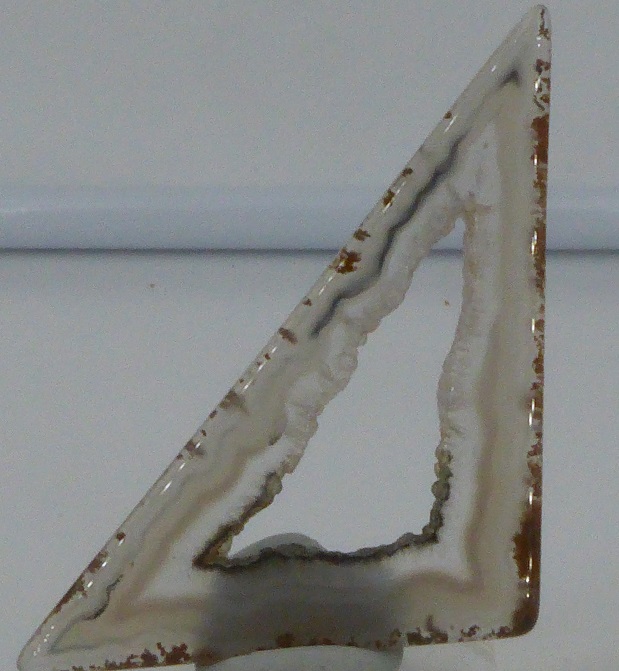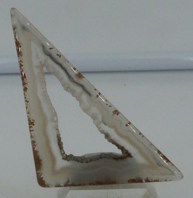 | AGATE / Paraïba, Brésil / Superbe tranche d'agate polyédrique. Découverte en 1974, lors de la construction de la route transamazonienne, le gisement est aujourd'hui épuisée. Elle montre de belles zonations. De forme unique, elle est plutôt rare sur le marché | Disponible |