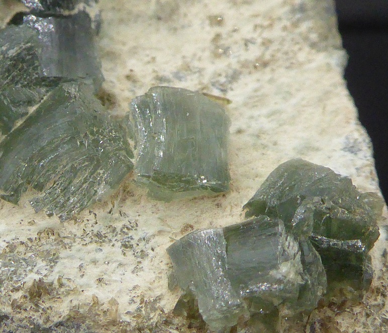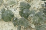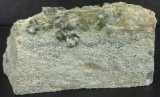| Description : | Très bonne pièce de prehnite cristallisée en forme de "casque". Les cristaux sont très verts, cela est dû à des inclusions d'actinolite. Les plus grands mesurent 0,5 cm. |