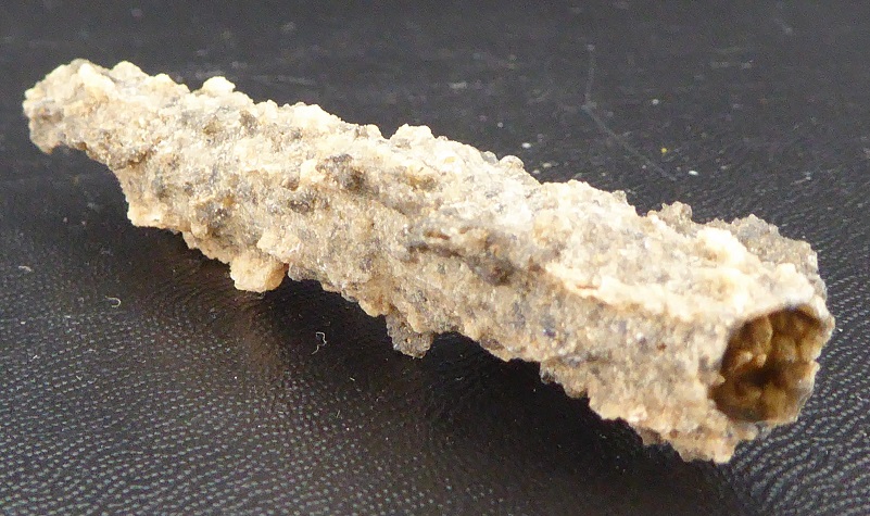 | FULGURITE / Smara, région El Hamra, Maroc / Cette fulgurite est de la silice naturel amorphe. Elle se forme suite à un impact de foudre sur un sol sableux. La puissance de la foudre est estimée à un milliard de Joules et provoque la fonte des matériaux siliceux, ce qui donne un tube creux. | Disponible |