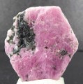| Description : | Beau cristal de rubis hexagonal, tabulaire et d'une belle couleur rouge. Un peu de phlogopite (mica) se trouve inclus dans le rubis. |