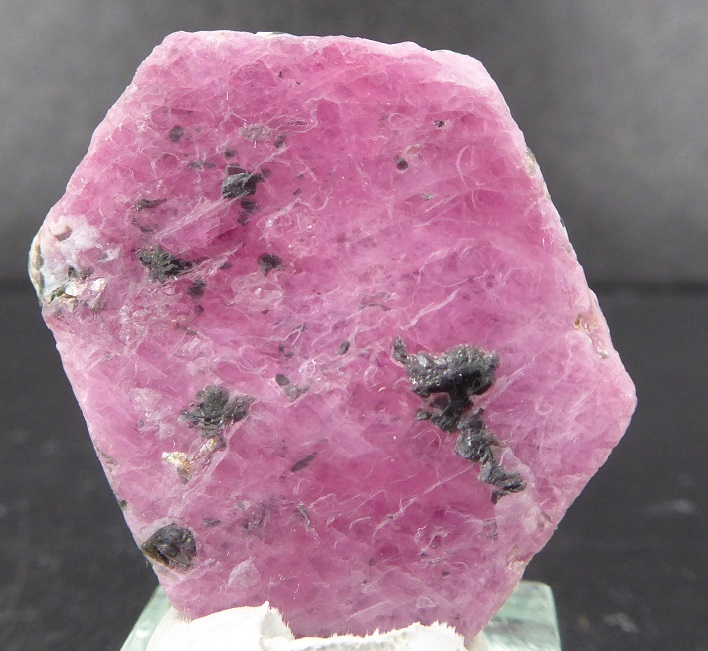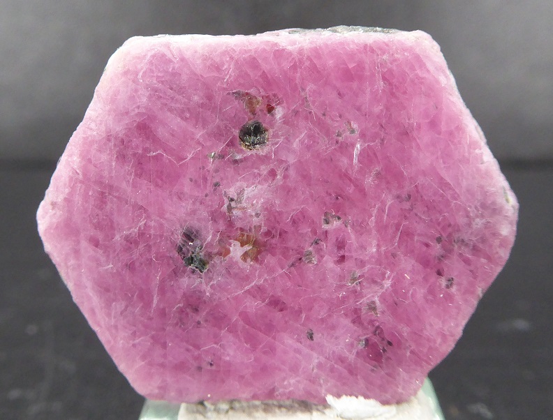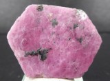 | Description : | Beau cristal de rubis hexagonal, tabulaire et d'une belle couleur rouge. Un peu de phlogopite (mica) se trouve inclus dans le rubis. |