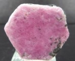 | Description : | Beau cristal de rubis hexagonal, tabulaire et d'une belle couleur rouge. Un peu de phlogopite (mica) se trouve inclus dans le rubis. |