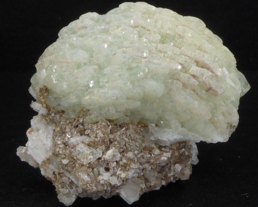 | PREHNTE / Djebel Melh, Cercle de Figuig, Province de Figuig, Région de l’Oriental, Maroc / Jolie pièce de prehnite verte, l'agrégat de cristaux forme une boule. Pièce très esthétique. | Disponible |