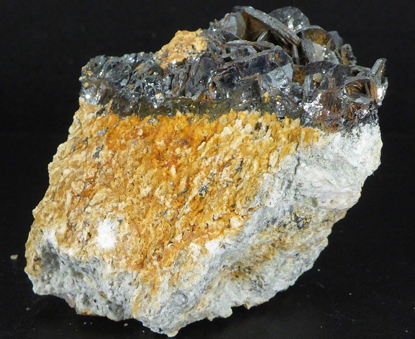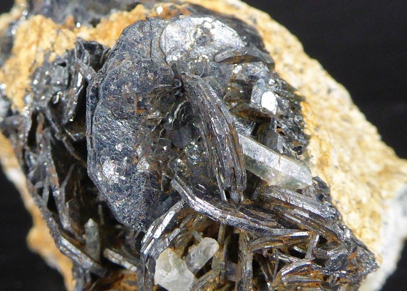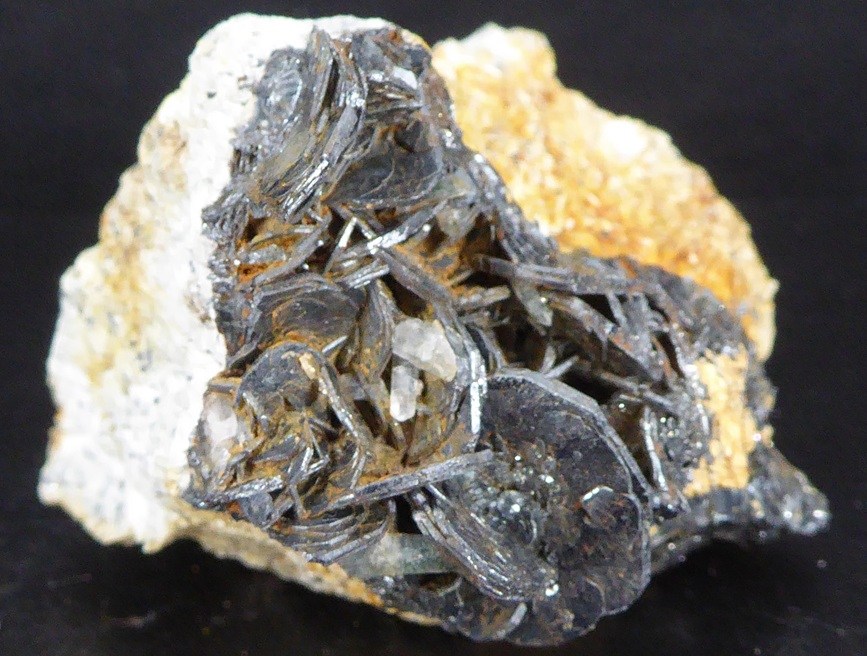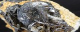 | HEMATITE / Grand Mont, Beaufortain, Savoie, France / Belle pièce d'hématite montrant plusieurs beaux cristaux lamellaires et brillants dont le plus grand mesure 1,6 cm. Quelques quartz se trouvent sur la pièce. | Disponible |