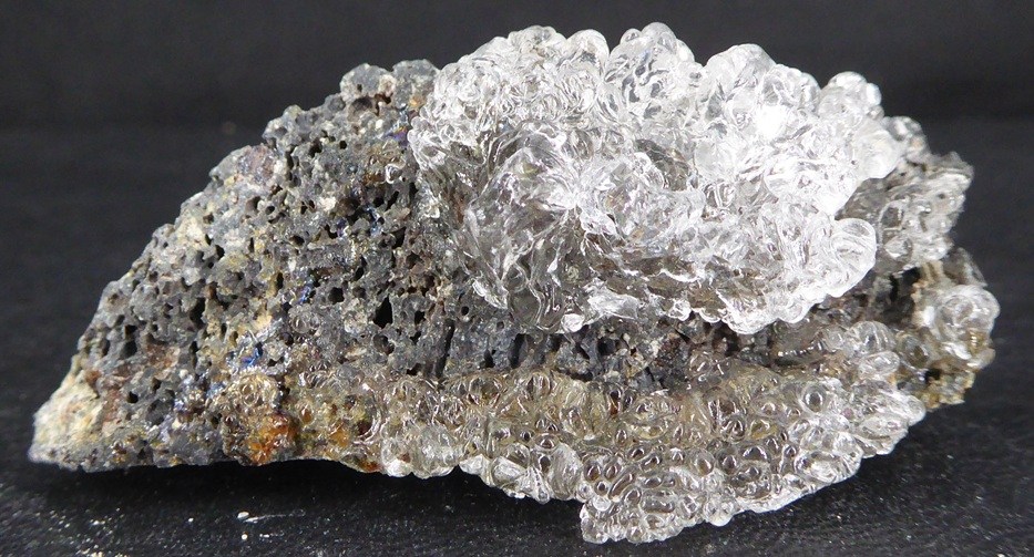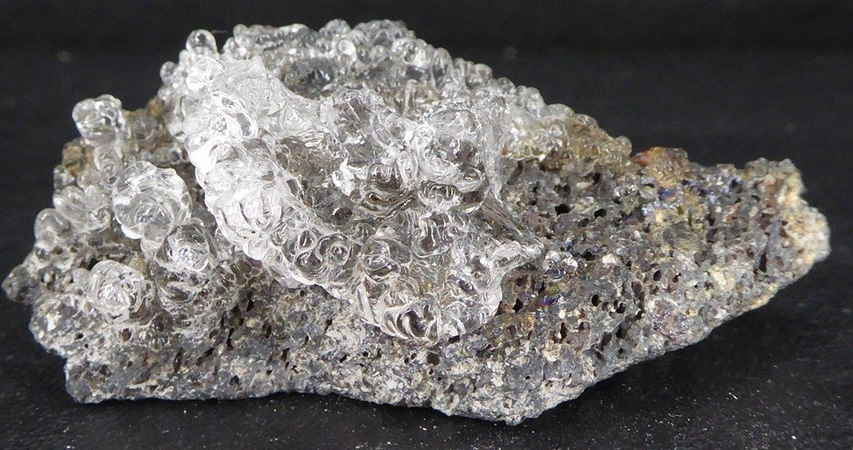 | OPALE (variété Hyalite) Tarcal, Monts Zemplén, Borsod-Abauj-Zemplén Co., Hongrie / Belle pièce de cette rare variété d'opale nommée Hyalite. La cristallisation est curieuse (botryoïdal globuleuse) et transparente. Elle montre une belle fluorescence verte sous les U. V. courts. | Disponible |