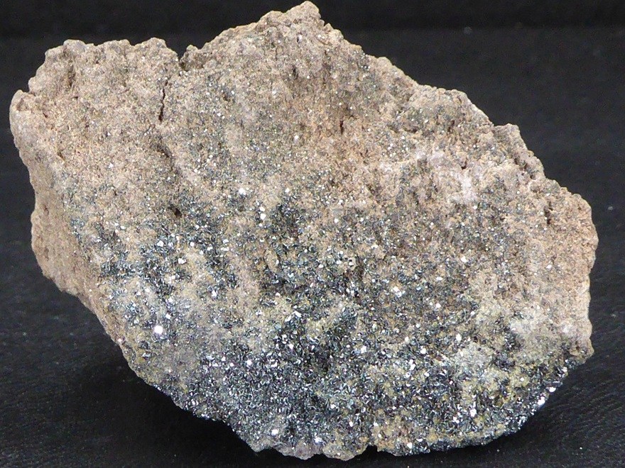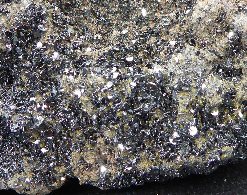 | HEMATITE / Puy de Tunisset, Saint Ours Les Roches, Puy de Dôme, France / Bon échantillon montrant une multitude d'hématite en cristaux noirs brillants et donnant un bel aspect. Les cristaux ne dépasse pas le millimètre. | Disponible |