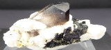 | Description : | Superbe pièce composée d'un quartz enfumé de 1,6 cm posé sur de l'albite cristallisée et d'aegirine noire. Une petit baguette d'un minéral non déterminé se trouve dans le quartz |