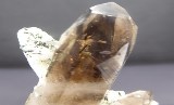 | Description : | Très belle cristallisation de quartz enfumé de 3,3 cm montrant un léger fantôme. Il est posé sur de l'albite massive d'où ressort quelques aegirines noires. |