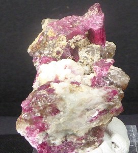 Rajout Mars 2026 / RUBELLITE / Vallée de Sahatany, région de Vakinankarata, province d'Antananarivo, Madagascar / Bonne pièce composée de tourmaline rouge de la variété rubellite dont les cristaux les plus grands mesurent 2 cm. Un seule petit cristal est terminé. Ils sont inclus dans du quartz massif et de l'orthose.