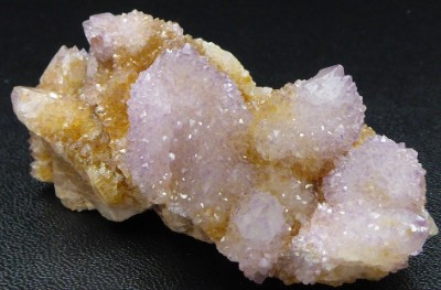 AMETHYSTE / Secteur de Boekenhouthoek, district de Mkobola, province de Mpumalanga, Afrique du sud / Belle pièce de quartz légèrement améthyste avec 2 générations de cristaux. La première est représentée par un quartz gris complétement recouvert par une deuxième génération d'une multitude de petits cristaux pointus avec pour terminaison un cristal plus développé. Le cristal le plus grand mesure 2,5 cm.