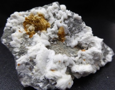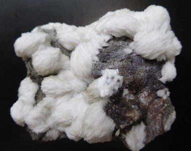 BARYTE / Saint Laurent le Minier, Gard, France / Belle pièce recouverte de baryte à lamelles blanches, formant une intercroissance sphéroïdale. Les plus grandes mesurent 2 cm.