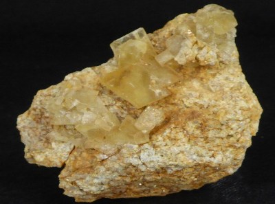 BARYTE / Vallée du Sans-Souci, Châtelguyon, Puy De Dôme, France / Echantillon intéressant montrant plusieurs cristaux translucide de baryte dont le plus grand mesure 1 cm.