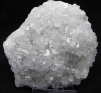 CALCITE / Mine Elmwood, Carthage, Smith Co., Tennessee, États-Unis / Curieuse cristallisation de calcite blanche, transparente à translucide, montrant des scalénoèdres tronqués et parfois biterminés. Les plus grands mesurent 3 cm. La pièce est cristallisée des deux cotés. Au dos, des cristaux sont clivés.