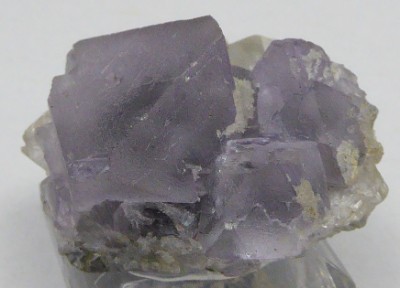 FLUORITE / Mine de Fontsante, massif du Tanneron, Var, France / Bonne pièce de fluorite cubique blanche à violine. Les cubes principaux mesurent 0,6 cm d'arêtes.