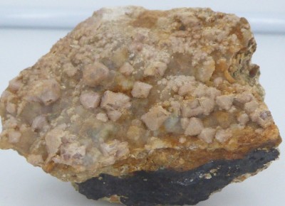 FLUORITE / mine Maine, Cordesse, Lucenay-l'Evêque, Saône-et-Loire, France / Pièce peu fréquente pour le gisement. L'échantillon montre des cristaux octaédriques de fluorite blanche mesurant 0,5 cm pour les plus grands.